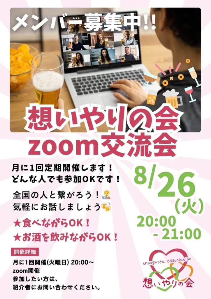 『気軽につながろう!食べながら・飲みながらOKのzoom交流会🍻』